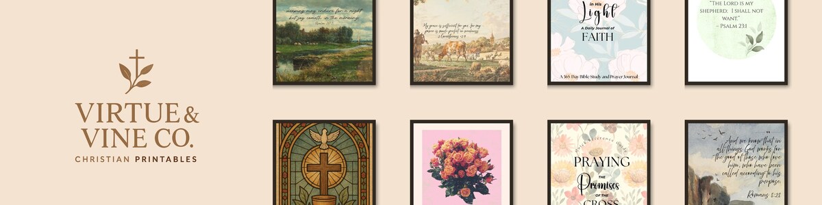 At Virtue & Vine Co., you’ll discover a curated collection of digital and printable resources—faith-focused planners, Bible study tools, meaningful templates, and elegant Scripture art designed to uplift your spirit and bring purpose to your daily life. Whether you’re seeking organizational clarity, spiritual encouragement, or beautiful artwork for your home, each design is made with care to support your walk with Christ.